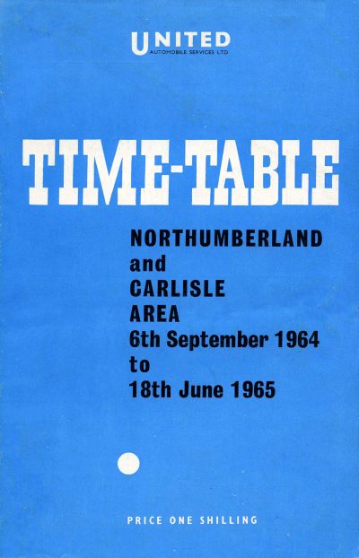 PDF copy of United Timetable Booklet (Northumberland and Carlisle Area 6 September 1964 – 18 June 1965) – 195 pages, File Size 45MB. Includes PDF copy of supplementary route map.
